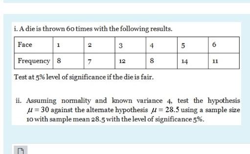 Solved I A Die Is Thrown 60 Times With The Following Chegg Com